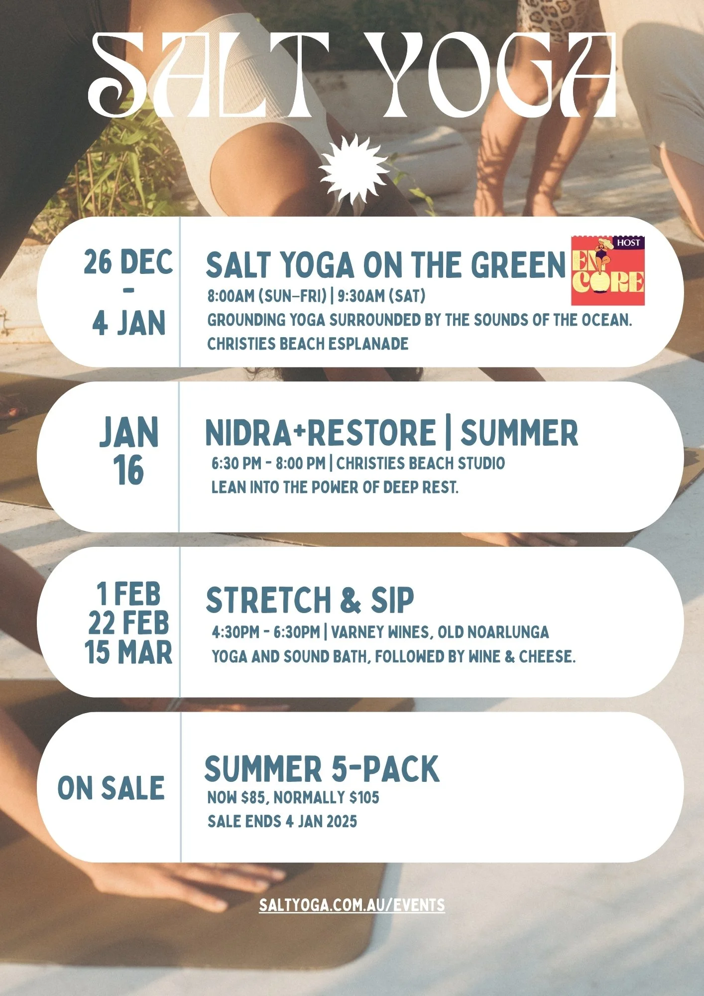 or, email: hello@saltyoga.com.au